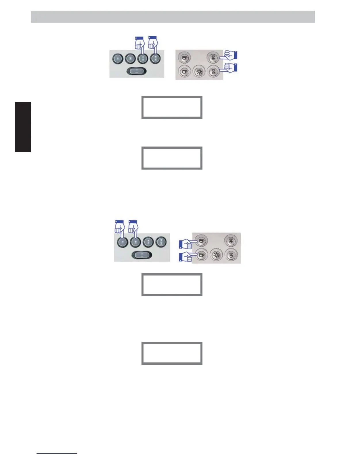 To eliminate this alarm, set the main switch to position 0. Press the dose buttons “1 coee and 1 espresso” from