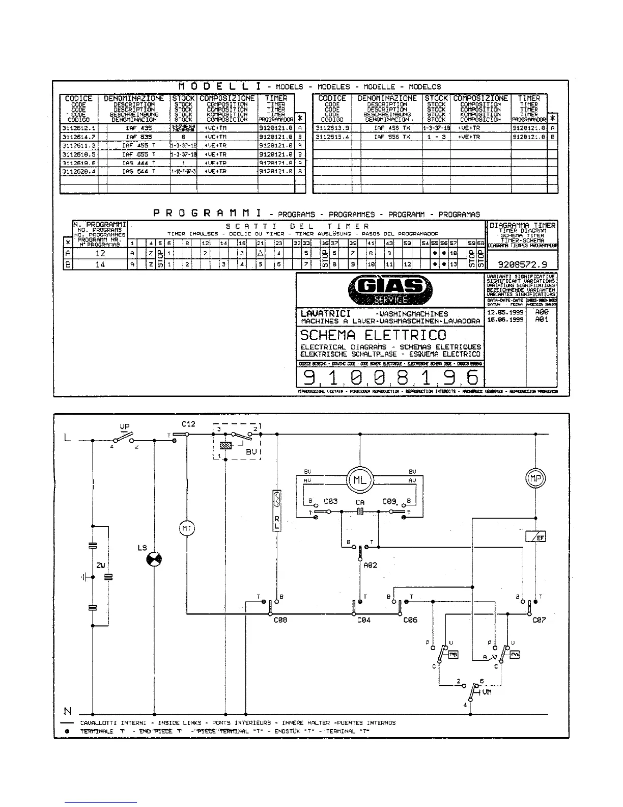 Iberna LBIAF655T - Electrical Schematic and Timer Diagrams; Appliance Electrical Schematic; Timer Program Sequence Chart