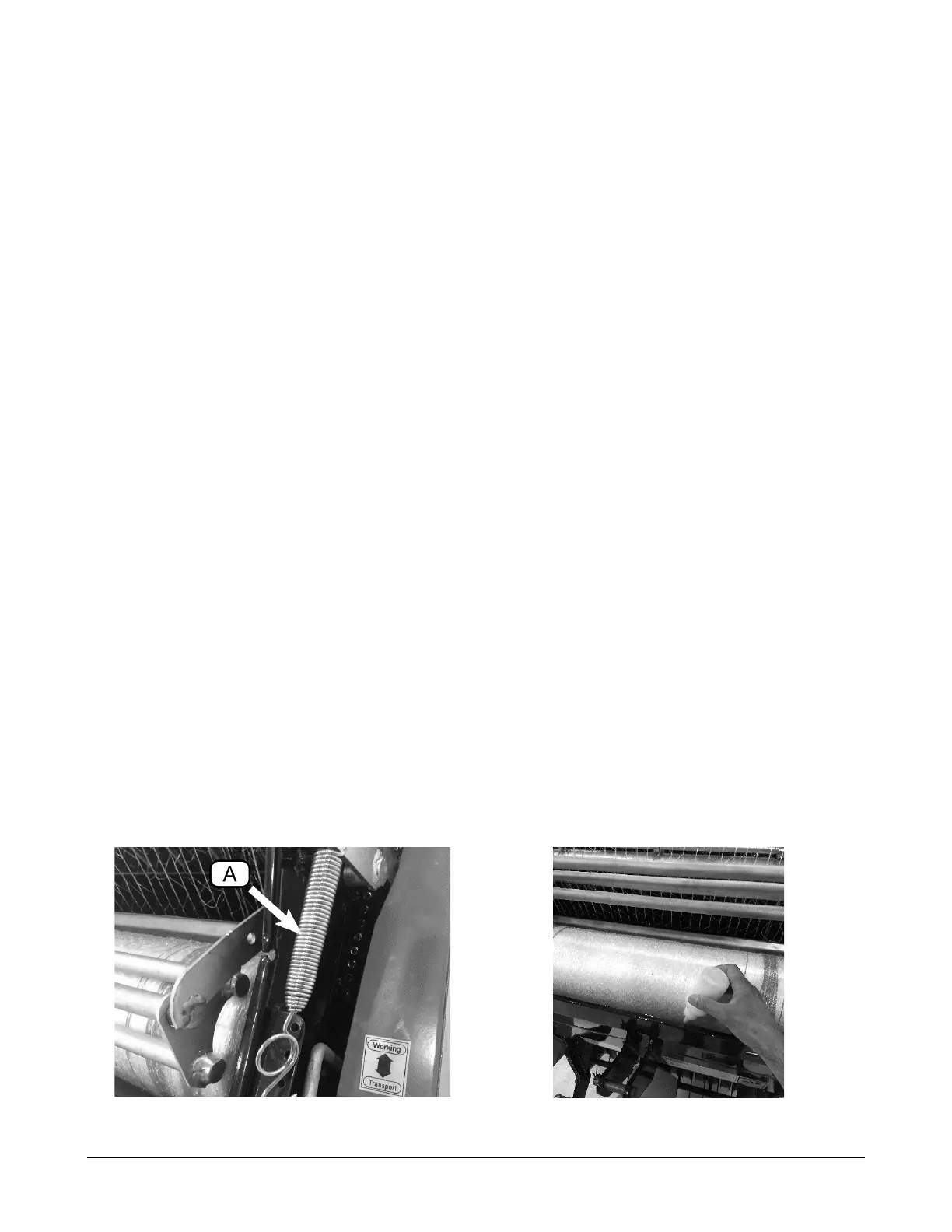 • A new roll of netting will require a lower tension setting (a hole closer to the rear of the machine) than