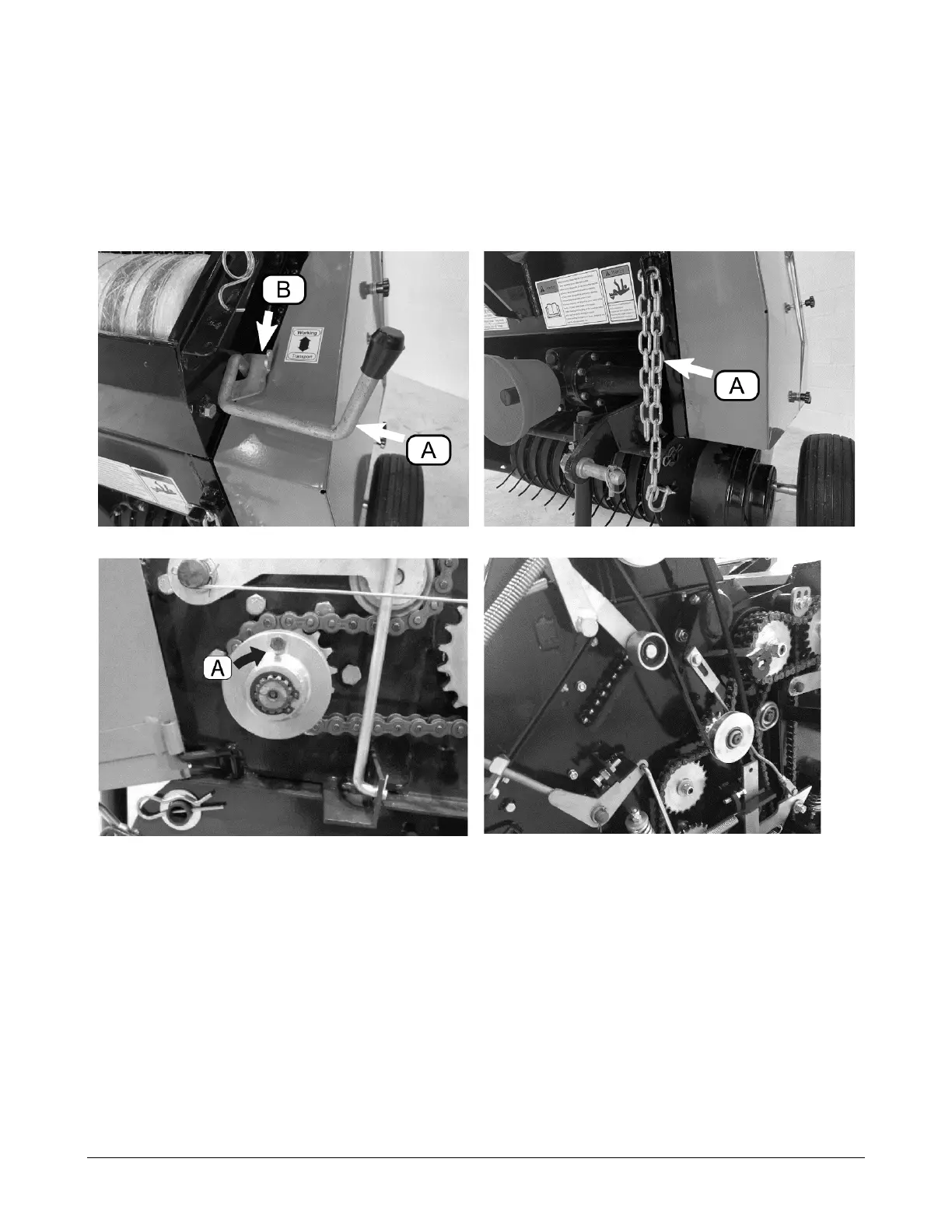 bale ejector (Figure 15, A) rolls the finished bale far enough from the machine to allow the gate to close.