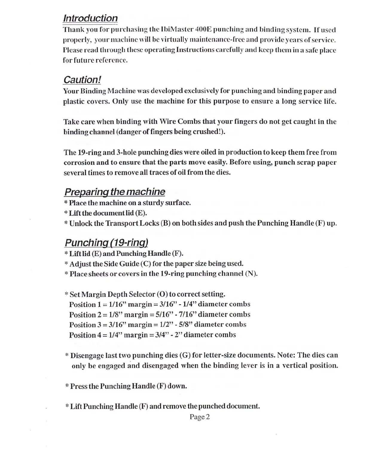 ibico Ibimaster 400e - Ibimaster 400 e Instruction Manual Overview; Introduction to Ibimaster 400 e; Important Safety Cautions; Machine Preparation Steps
