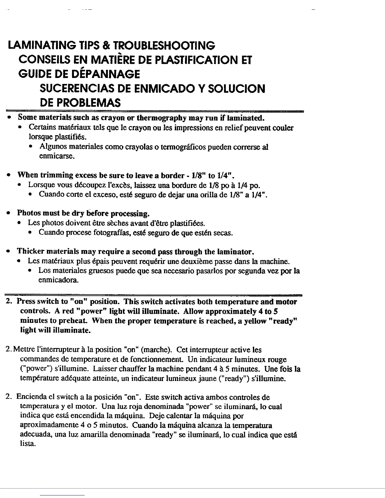 ibico ML-4 - Laminating Tips & Troubleshooting; Laminating Tips; Operation Start-Up