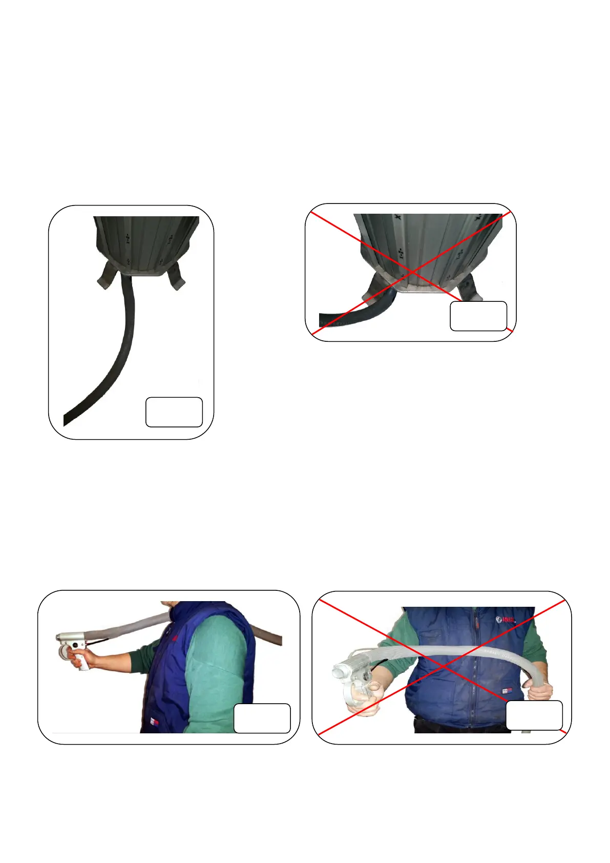 The figures below show how the abrasive hose should be positioned, in order to prevent anomalous