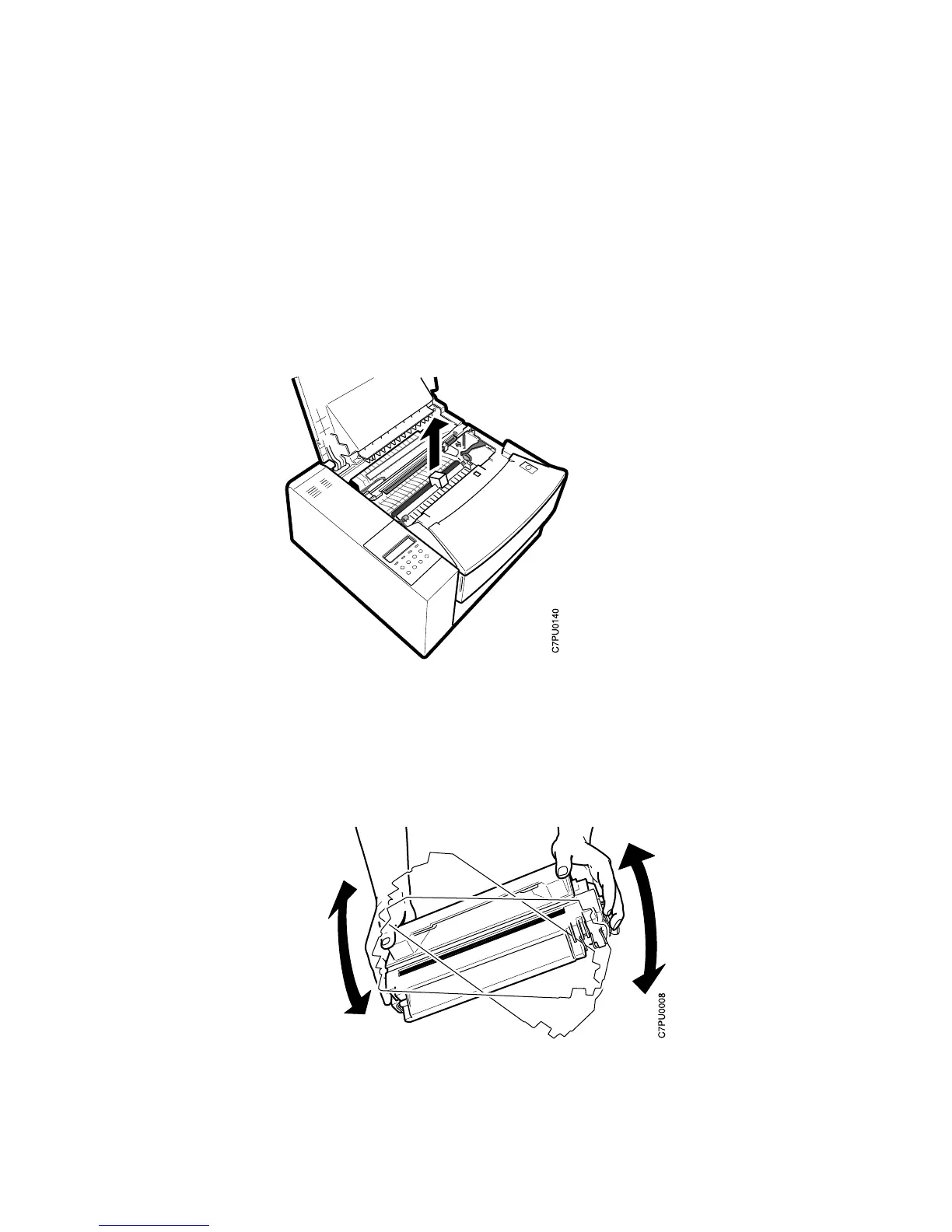 5. Grip the toner cartridge at each end and gently rock it from side to side to evenly
