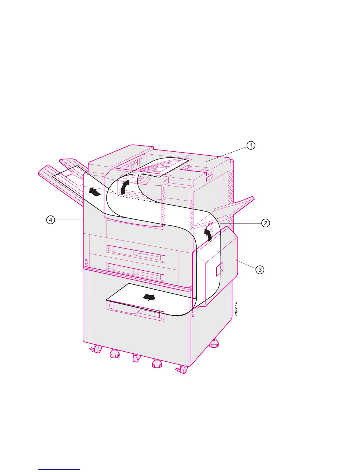 Figure 14, shows the paper path with the optional 2000-sheet paper input drawer