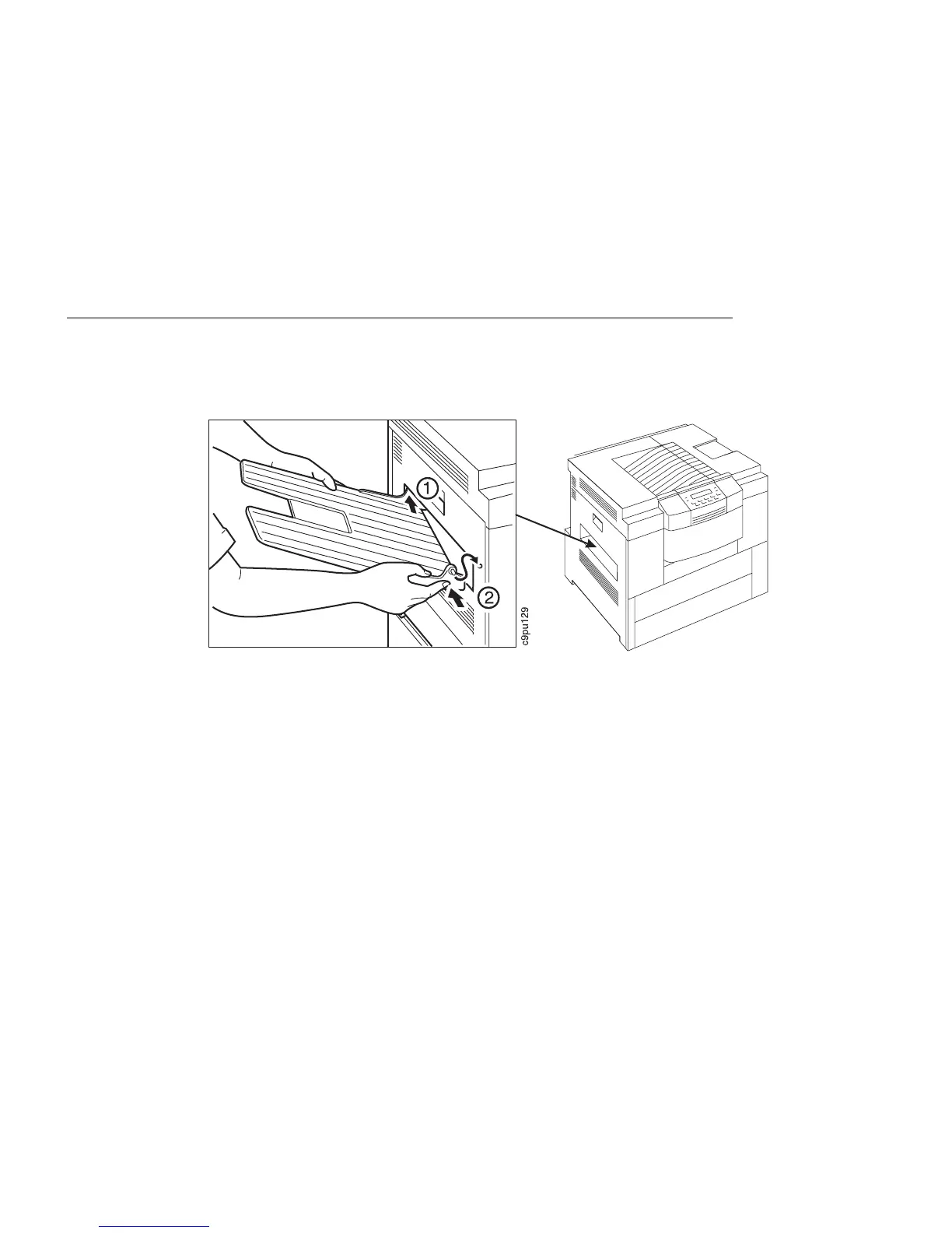 2. Attach the left (1) and right (2) tray clips to the printer.
