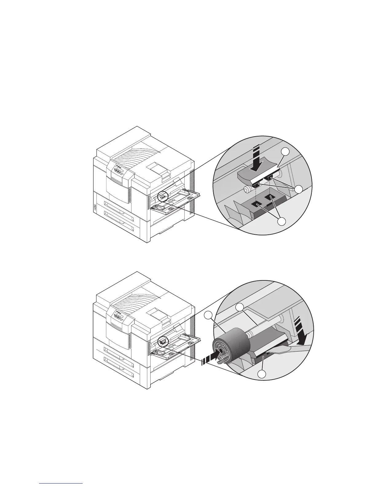 9. Lightly pull on the auxiliary feed pick-up roller (1) to make sure the roller is locked
