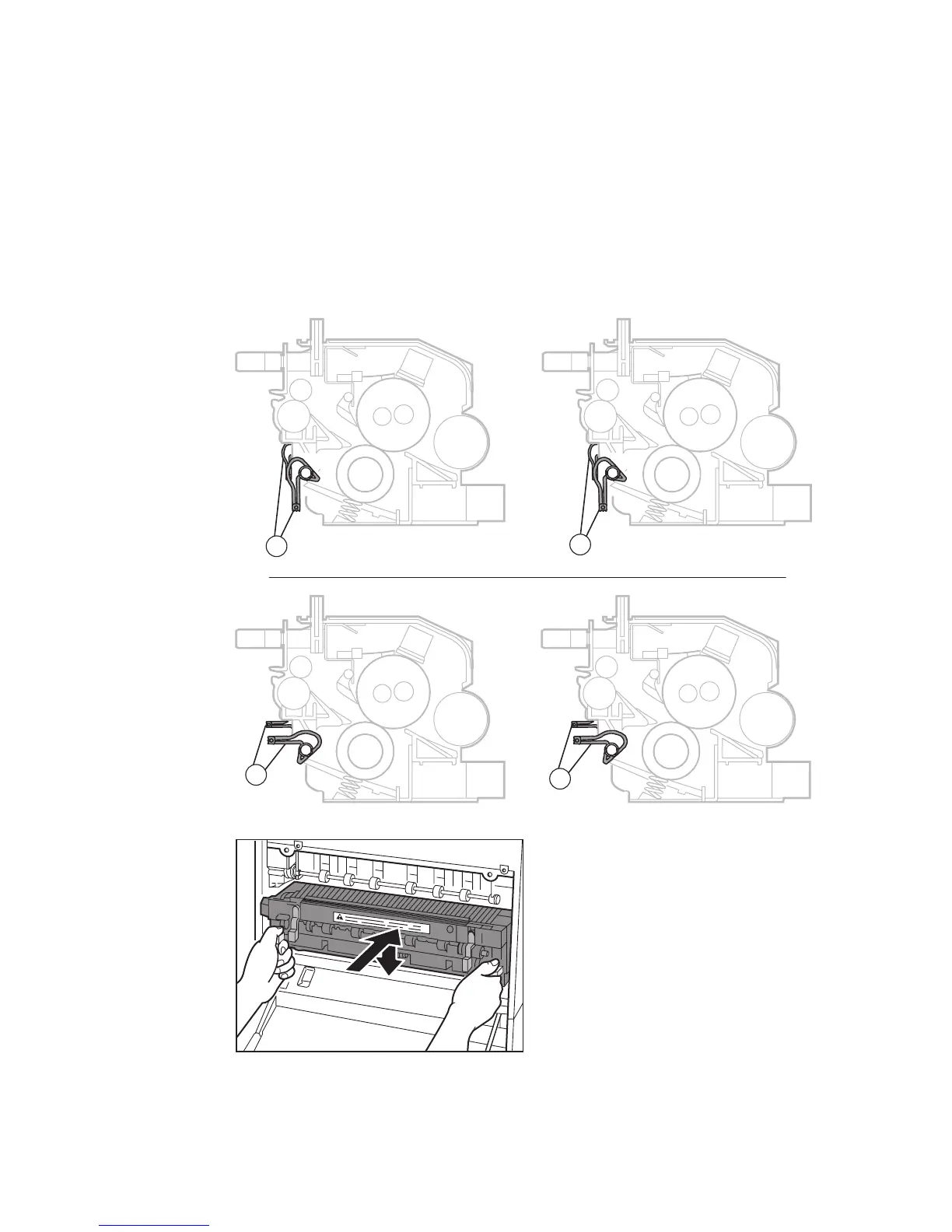 8. Grasp the handles of the new fuser assembly and slide it completely into its mount.