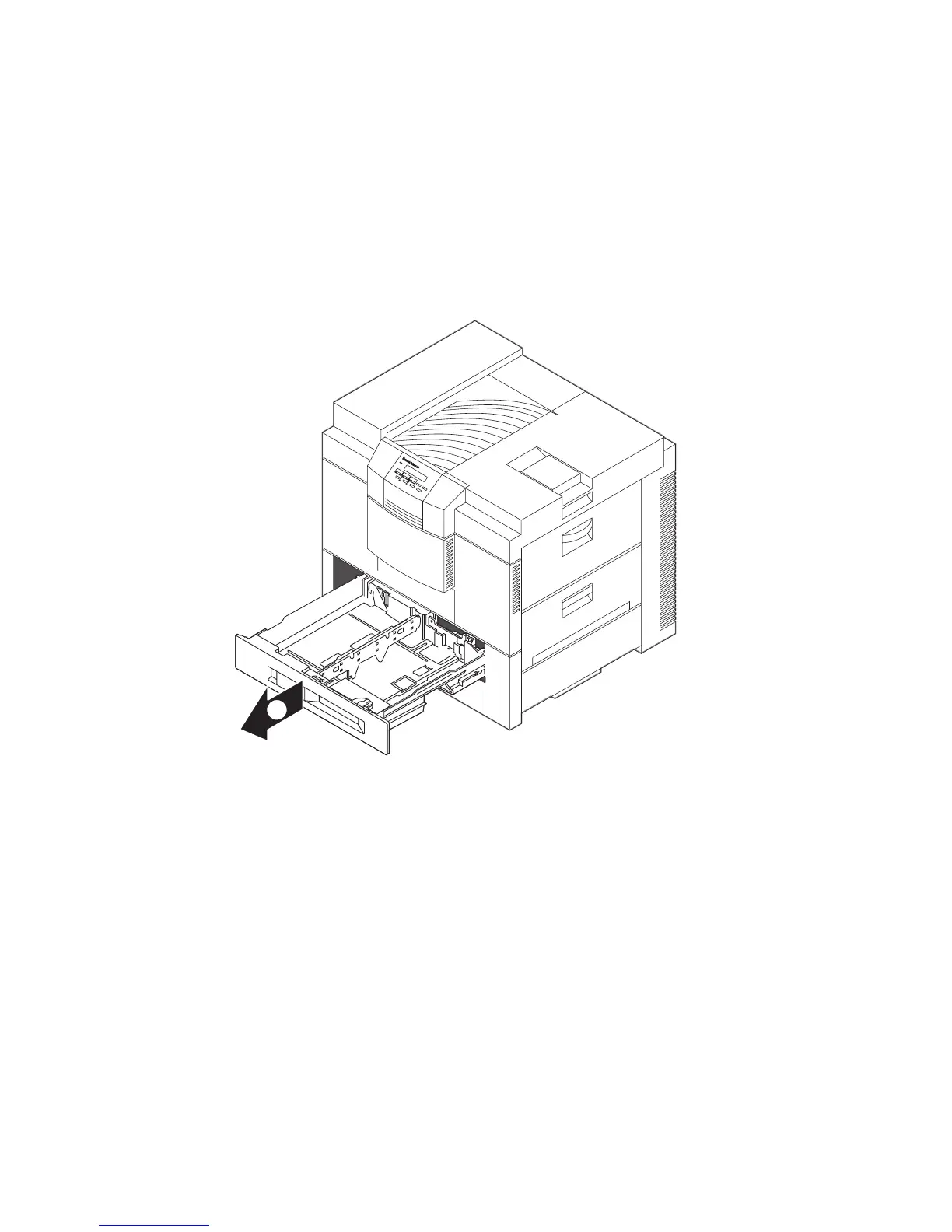3. Gently push the latch (1) to the right with your thumb as you pull tray 1 slightly up