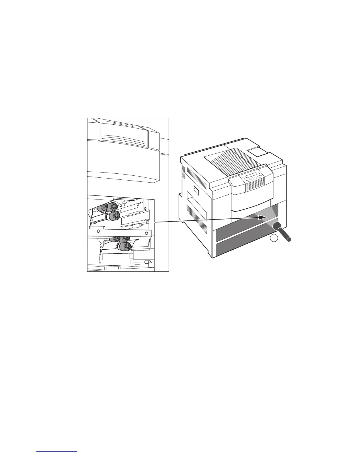 6. Insert your finger into the hub and press the lock tab (1) of the top pick-up roller (2)
