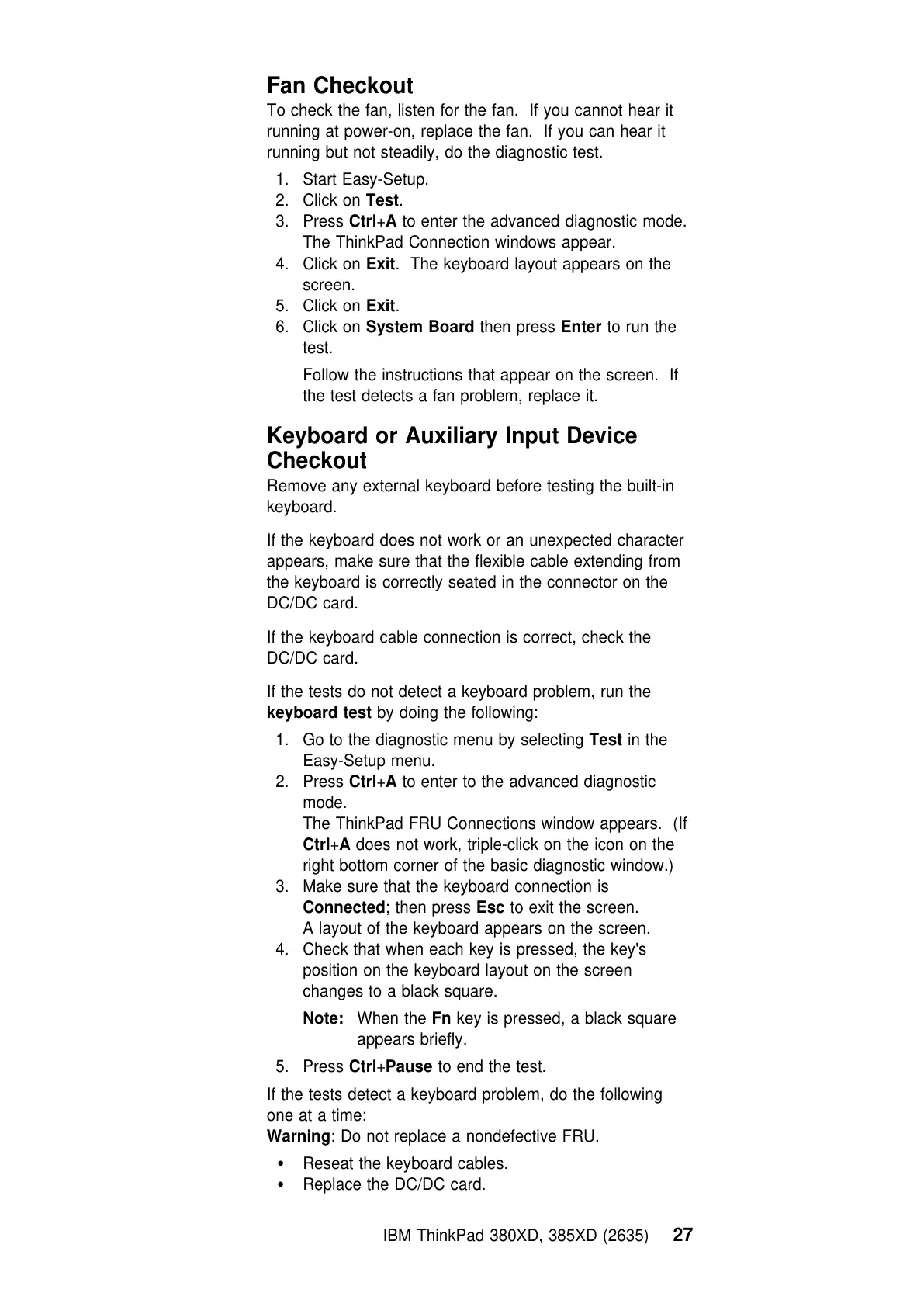 Warning: Do not replace a nondefective FRU.