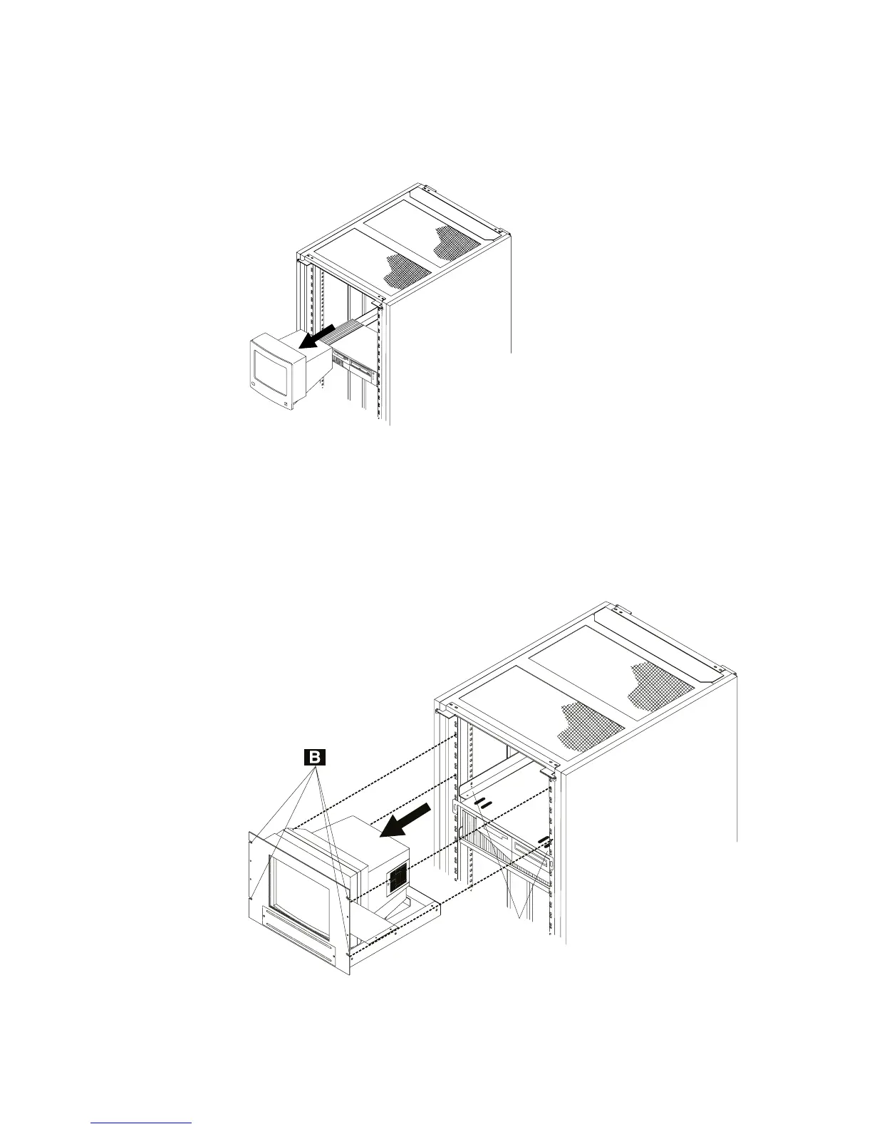 1. At the front of the rack remove the screws «B¬.