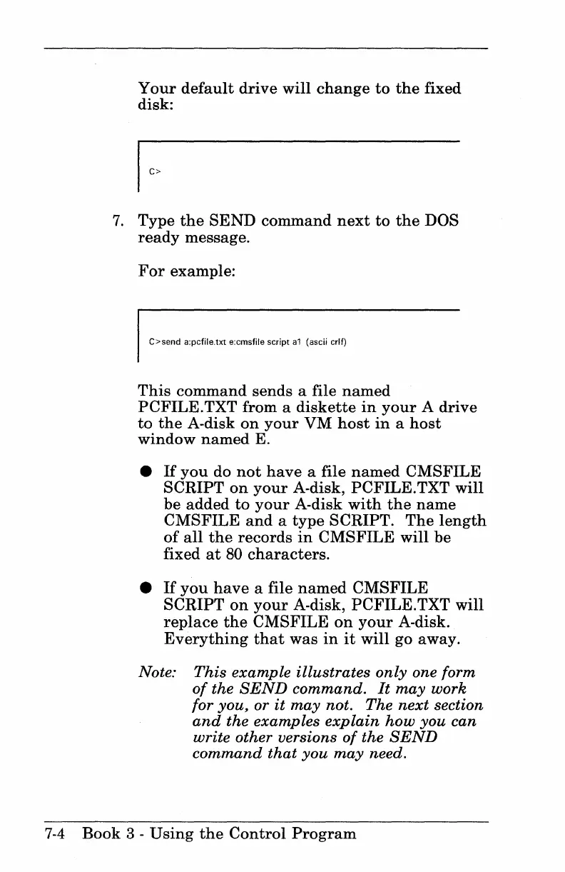 C>send a:pcfile.txt e:cmsfile script