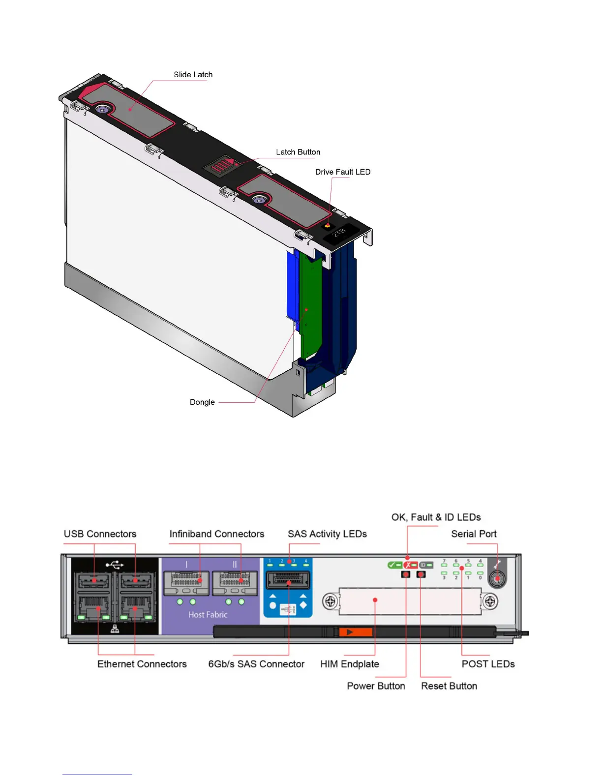 LEDs for a common I/O module, the 6 Gb/s SAS EBOD.