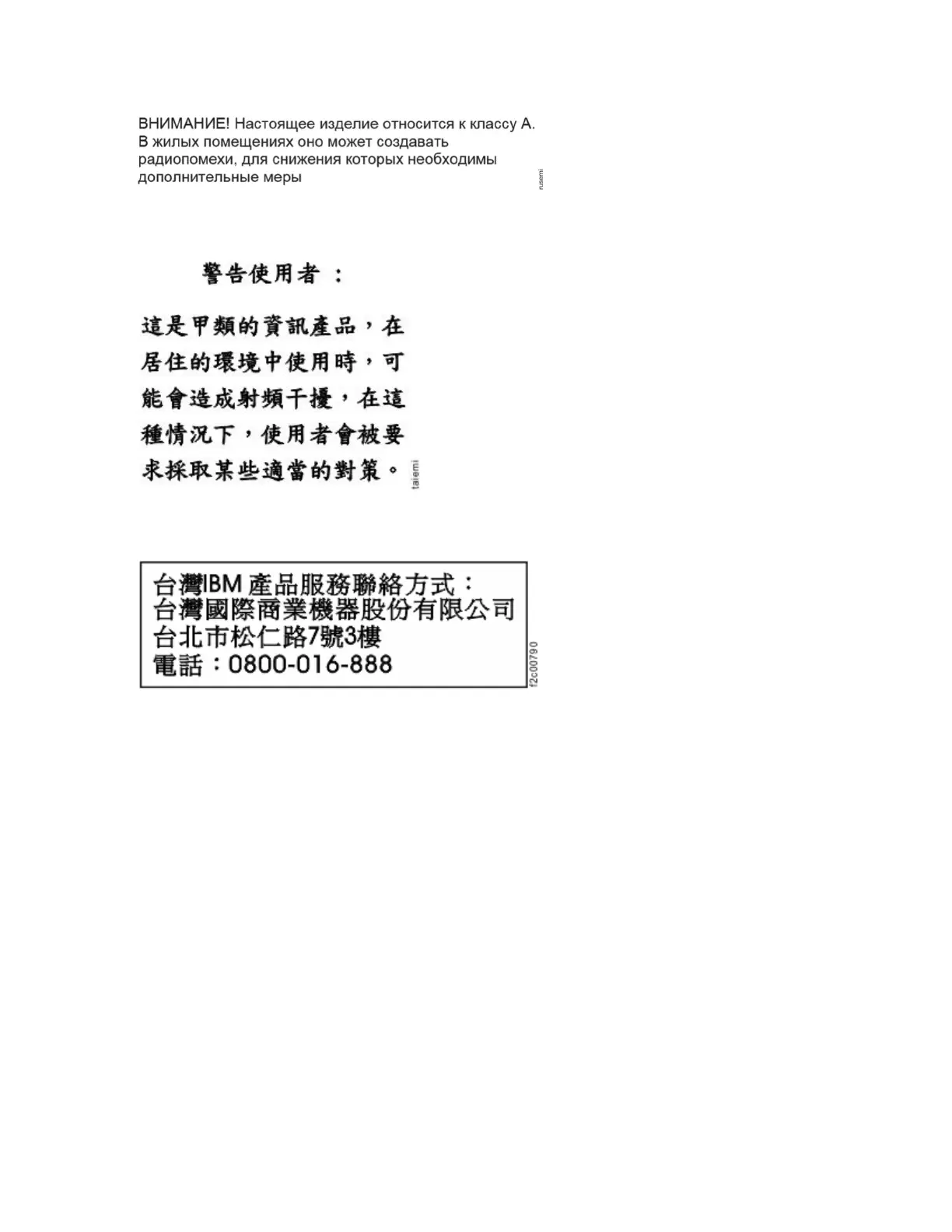 emission limits. IBM is not responsible for any radio or television interference caused by using other