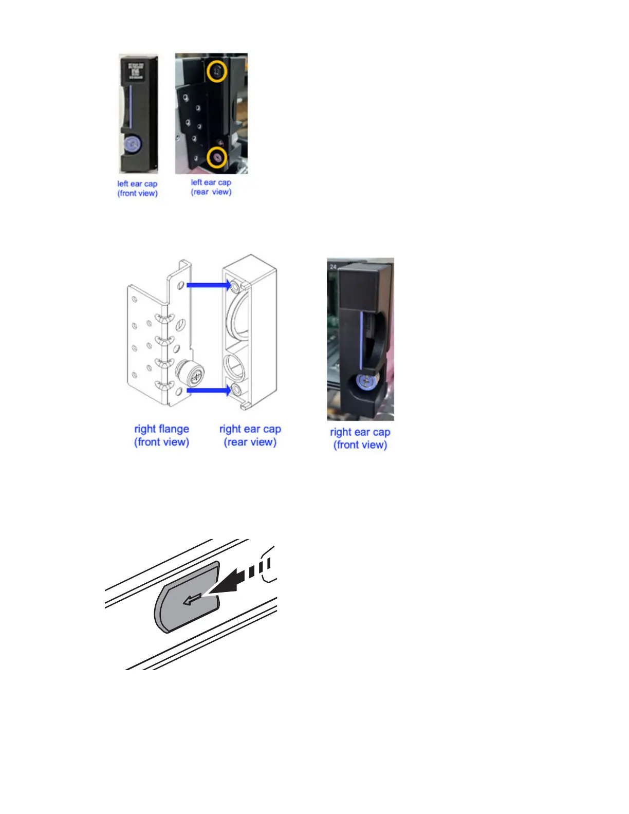 c) Repeat the above steps to install the right bezel ear cap on the right side of the enclosure.