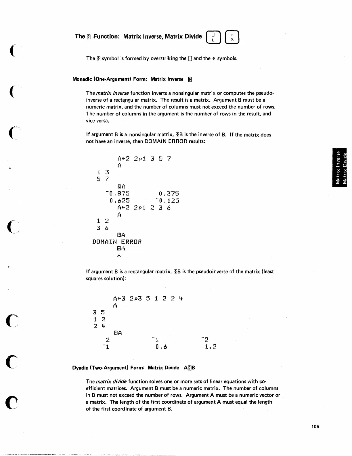 Dyadic (Two-Argument) Form: Matrix Divide AlliB