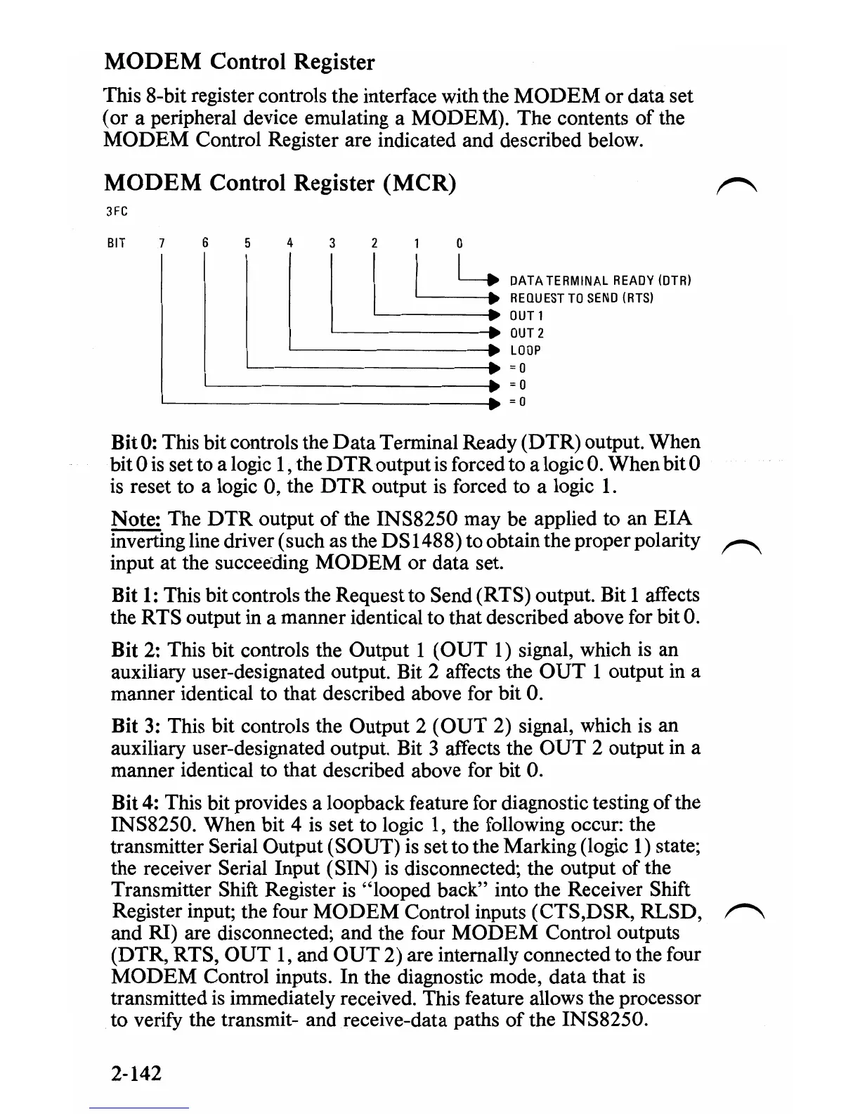 This bit controls the Request to Send (RTS) output. Bit 1 affects