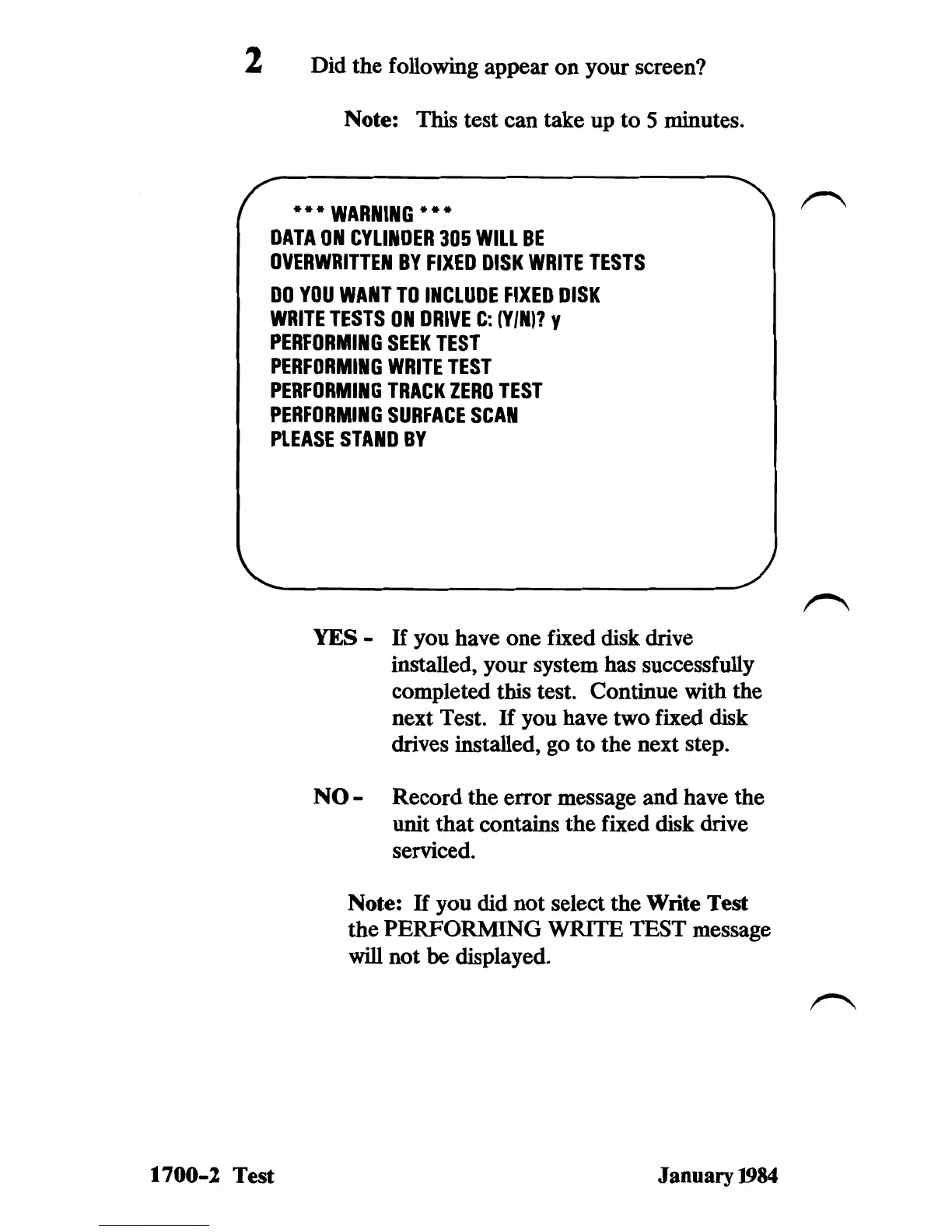 the PERFORMING WRITE TEST message