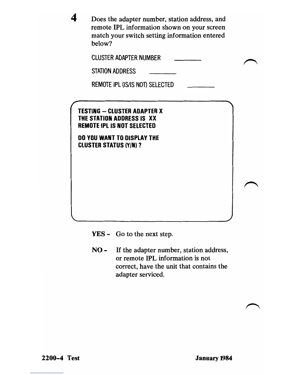 4 Does the adapter number, station address, and