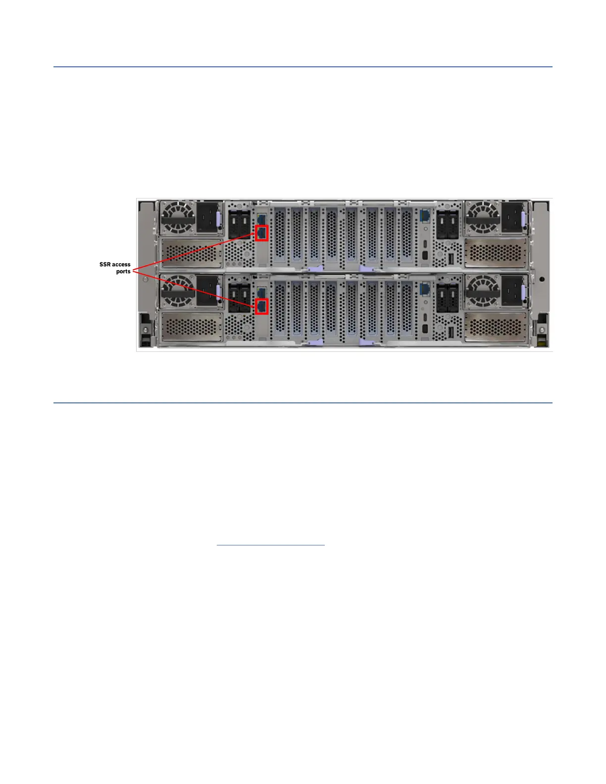 On the back panel of the canister, the bottom RJ45 10 GbE port is the SSR access port that a service