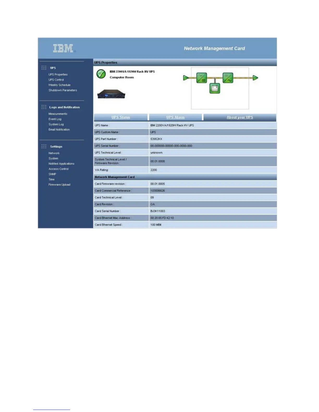 Figure 8. IBM LCD UPS Network Management Card (NMC) UPS properties window