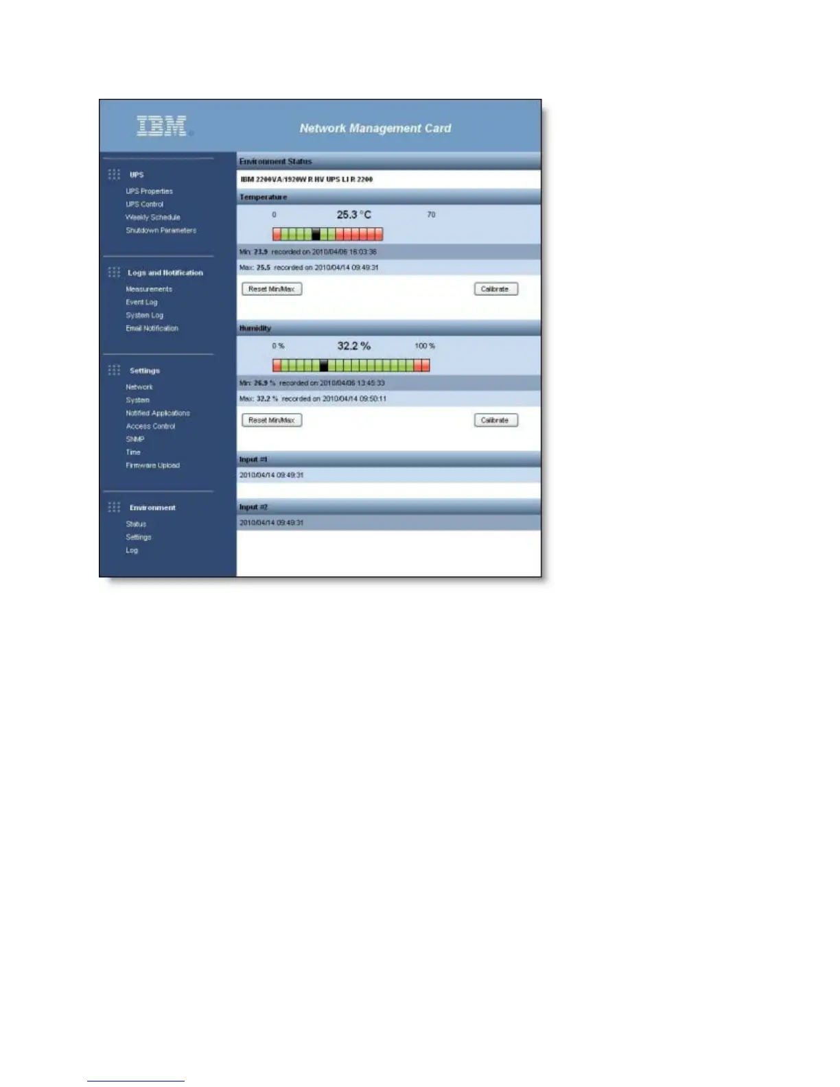 Figure 13. Environmental Monitoring Probe data as viewed from the Network Management Card web
