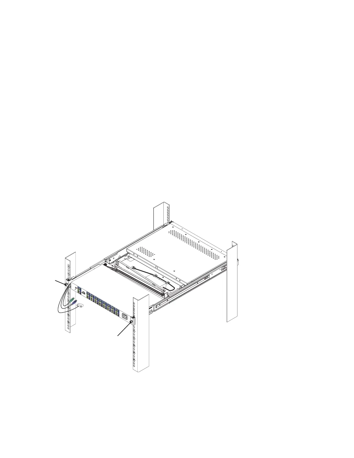 2. Install the console switch behind the flat-panel monitor and keyboard tray using four (two on each