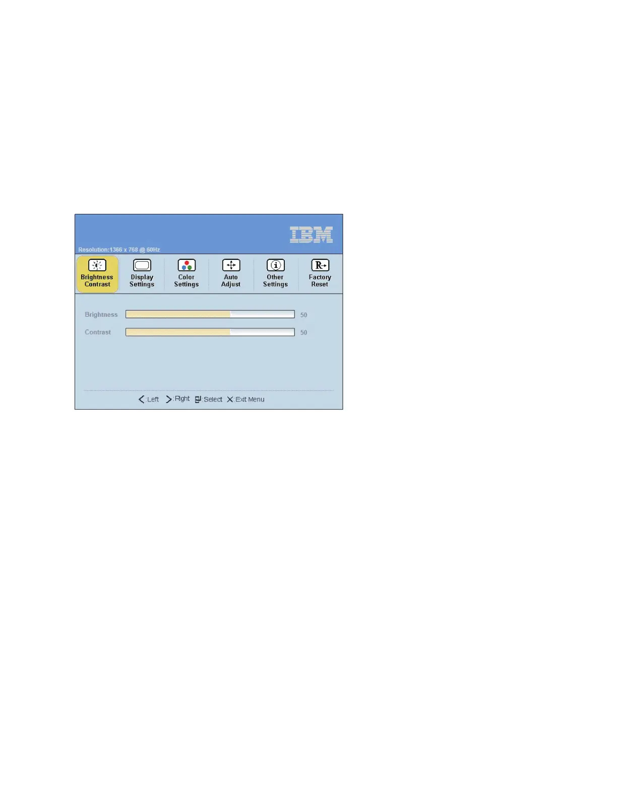 – Horizontal Position - Screen picture adjustment - Default at 50 Center of the Screen, incremental