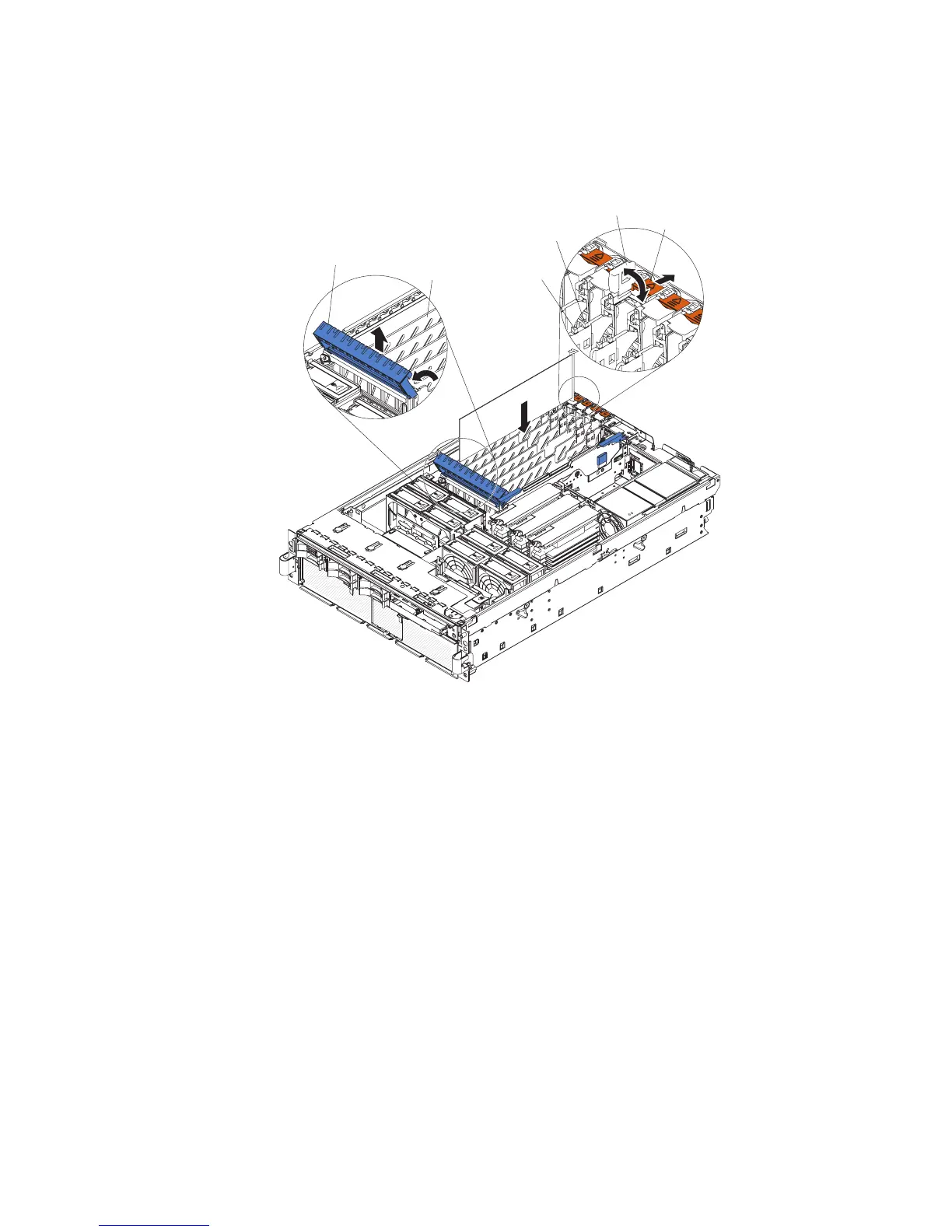 g. Push down on the blue PCI-X retaining bar to stabilize the adapter.