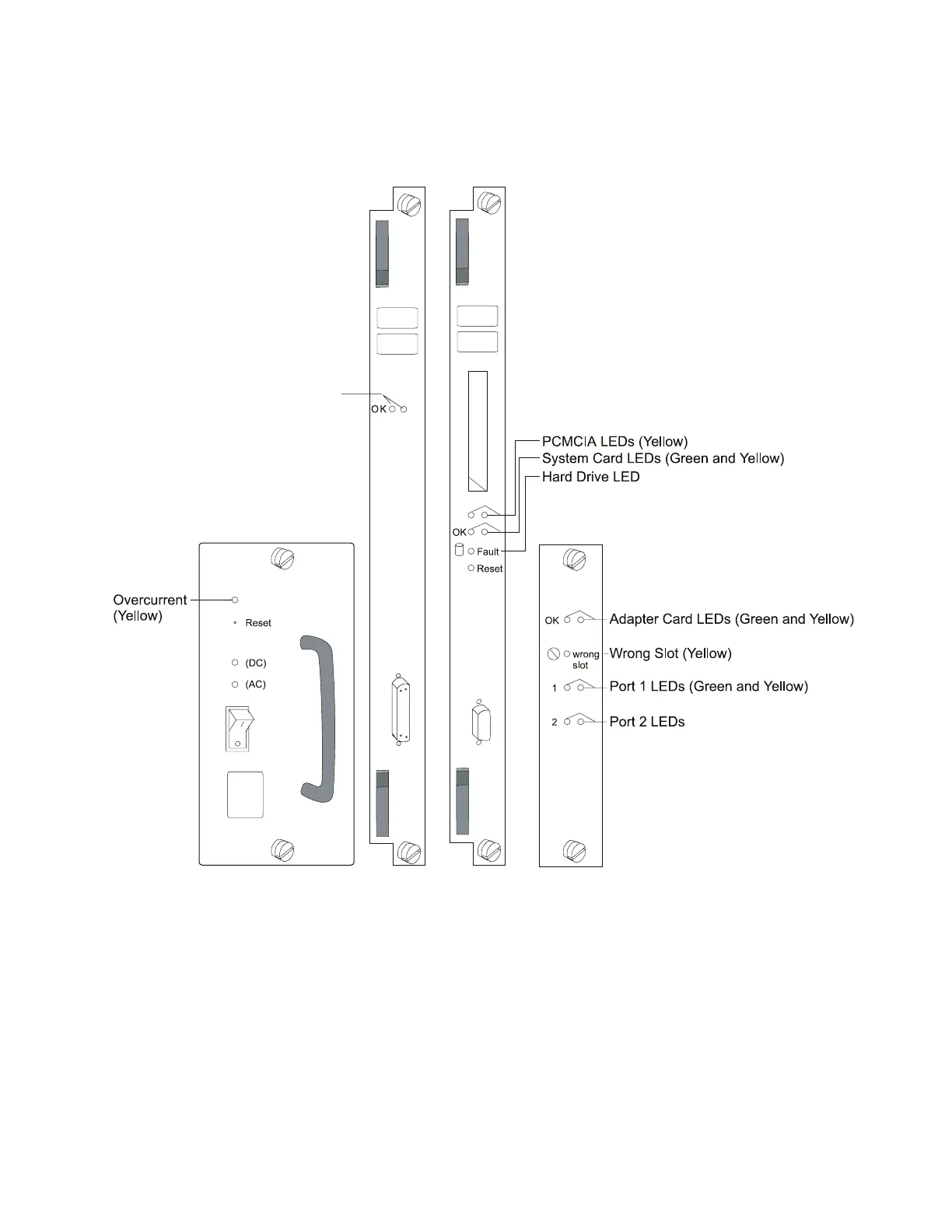 Figure 4-3. Power Supply, System Card, SAC card, and Adapter Card LEDs