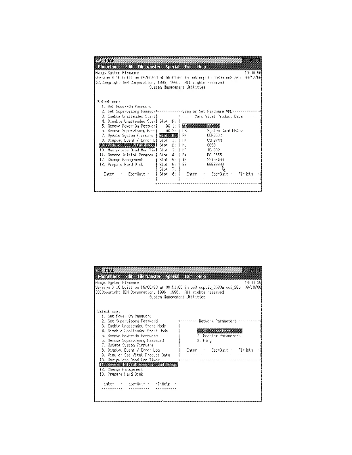 and press Enter, (1) IP Parameters is selected, press Enter again.