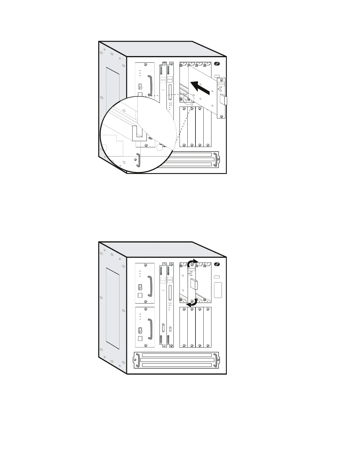 slot's upper and lower rails. Then, guide the adapter forward on the rails as