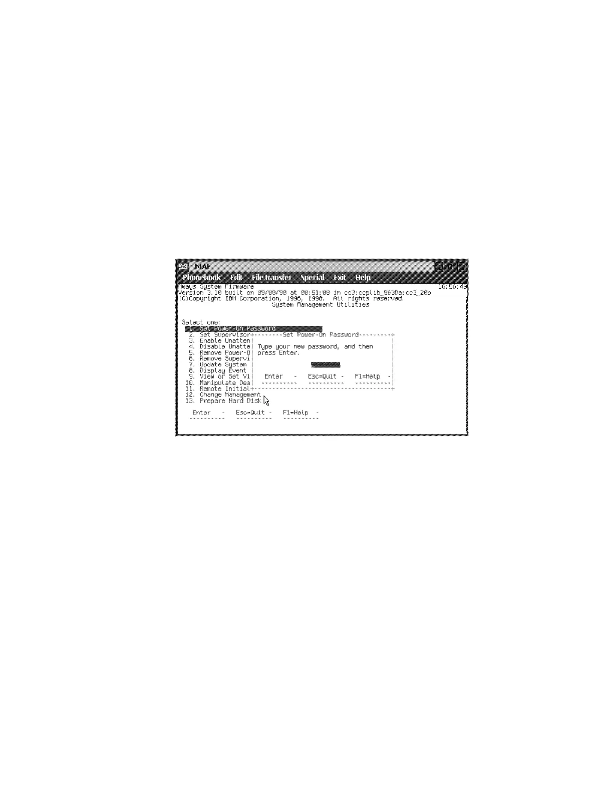 power-on password has been saved.