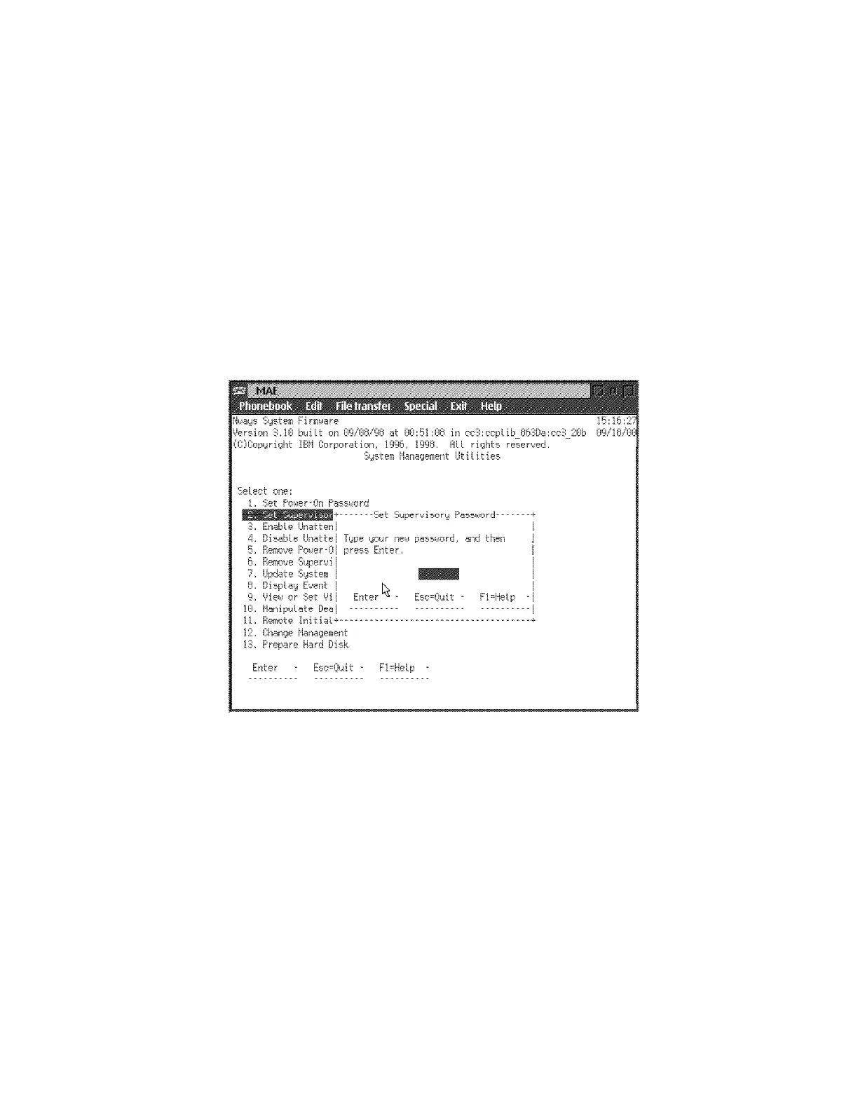 1 Select 2. Set Supervisory Password from the utilities panel. The Set