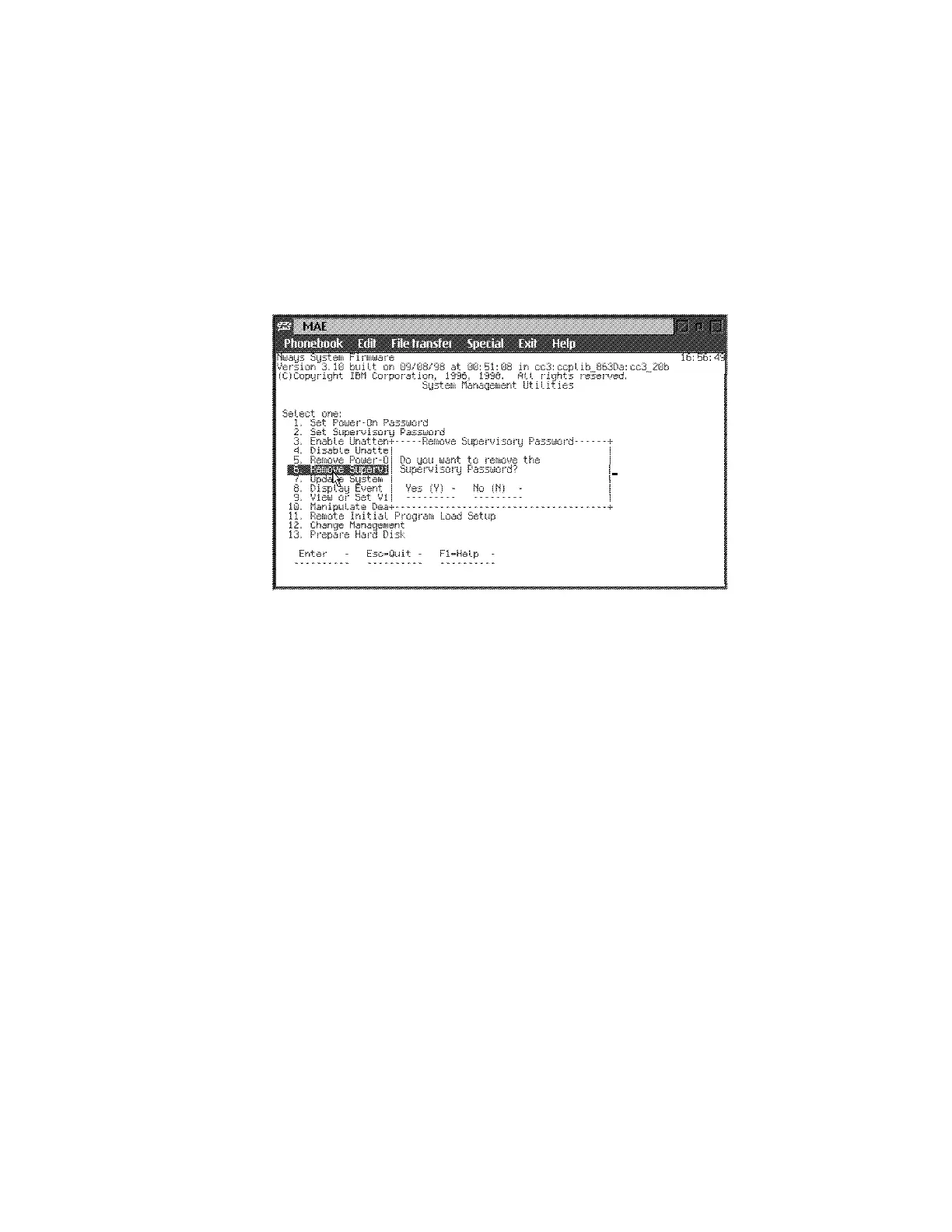 1 Select 6. Remove Supervisory Password from the utilities panel.