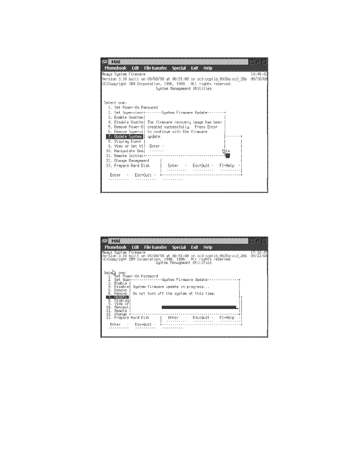 Note: Do not switch the system off. The process erases the old firmware