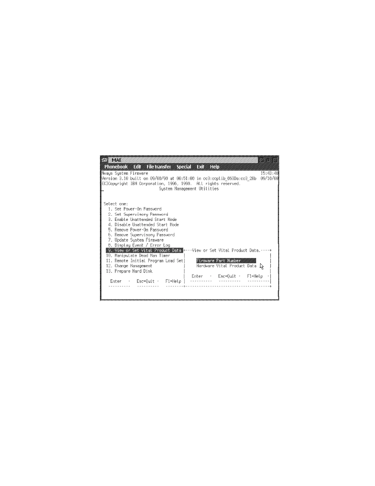 “Hardware Vital Product Data” menu) that is modifiable; Firmware Part
