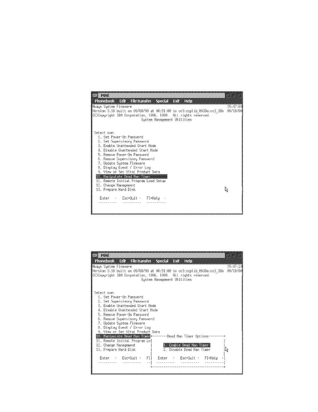 1 Select 10. Manipulate Dead Man Timer from the utilities panel, then press