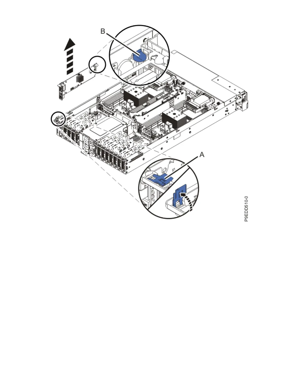 a) Place your nger on the top edge of the PCIe adapter divider (A) to hold the divider steady as