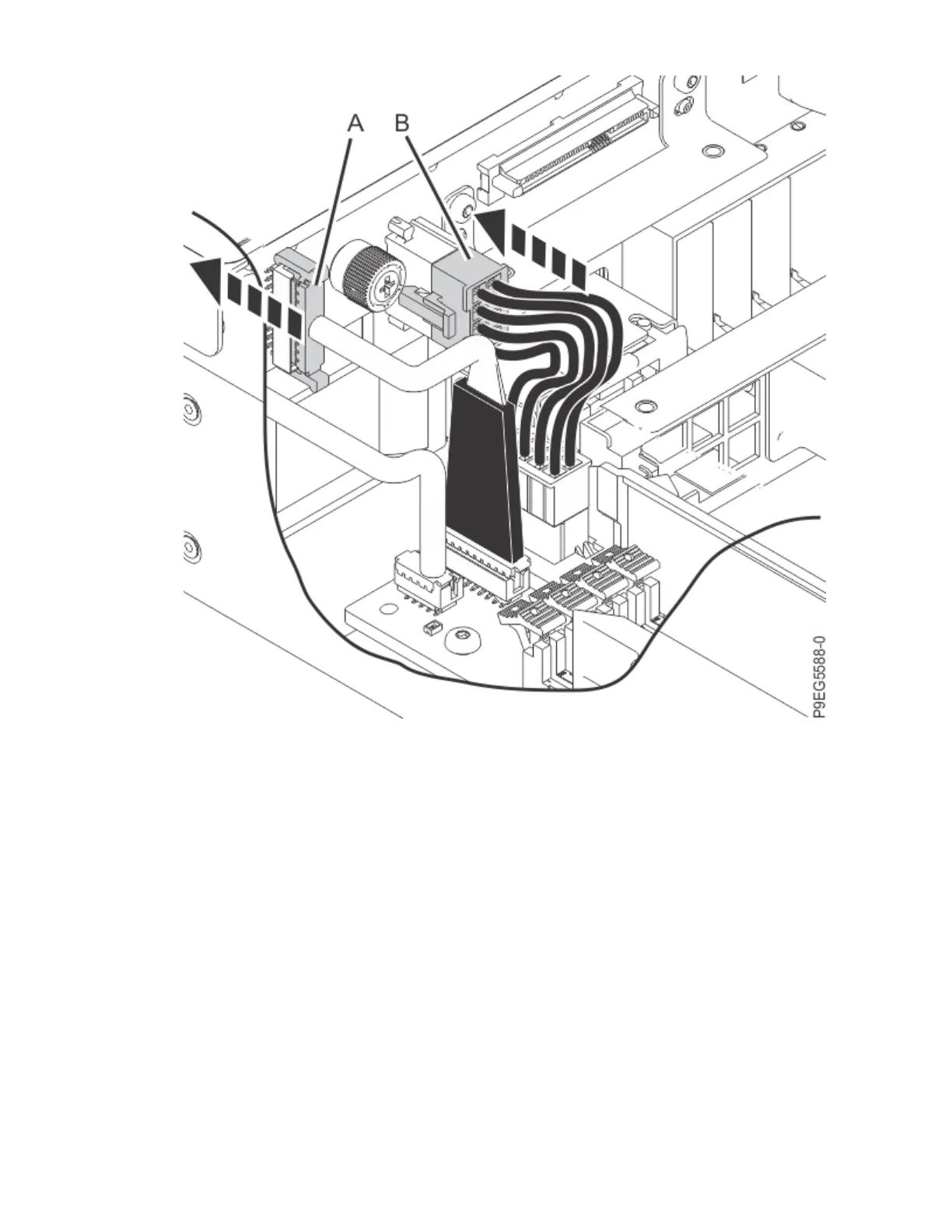 a) The chassis has four alignment pins (B) to secure the NVMe drive backplane (A). Insert the NVMe