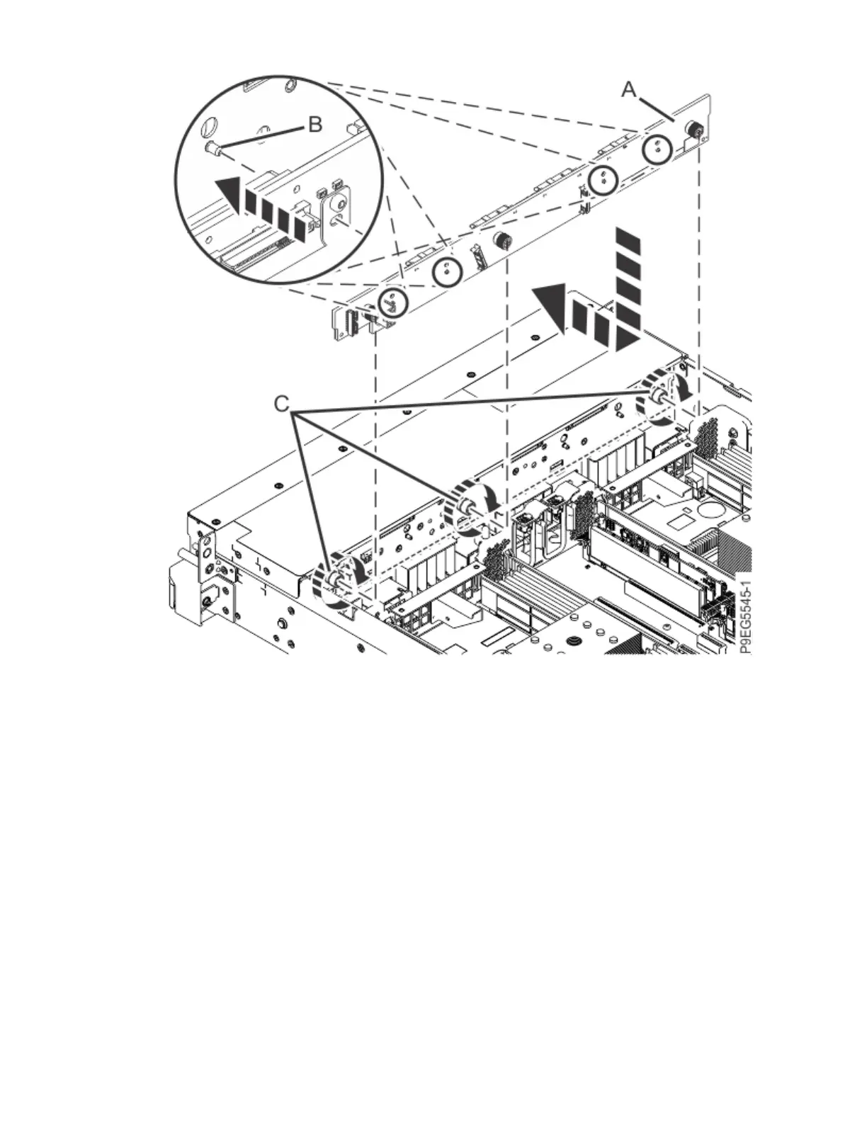 b) Carefully tighten each of the three captive thumbscrews (C) to secure the NVMe drive backplane