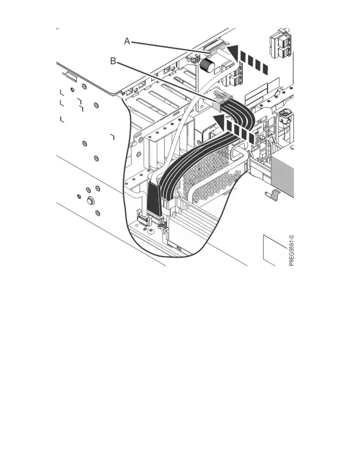 5. Using your labels, reconnect the front SAS cables to the disk drive backplane as shown in the following