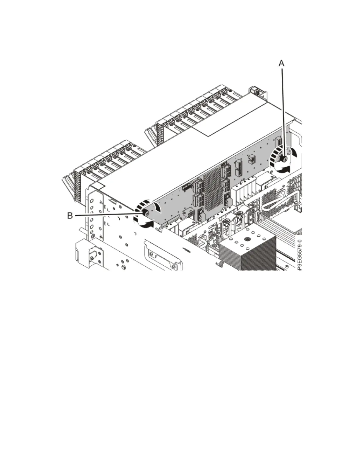8. Using the thumbscrews (A) and (B), slide the disk drive backplane to the side in the direction that is