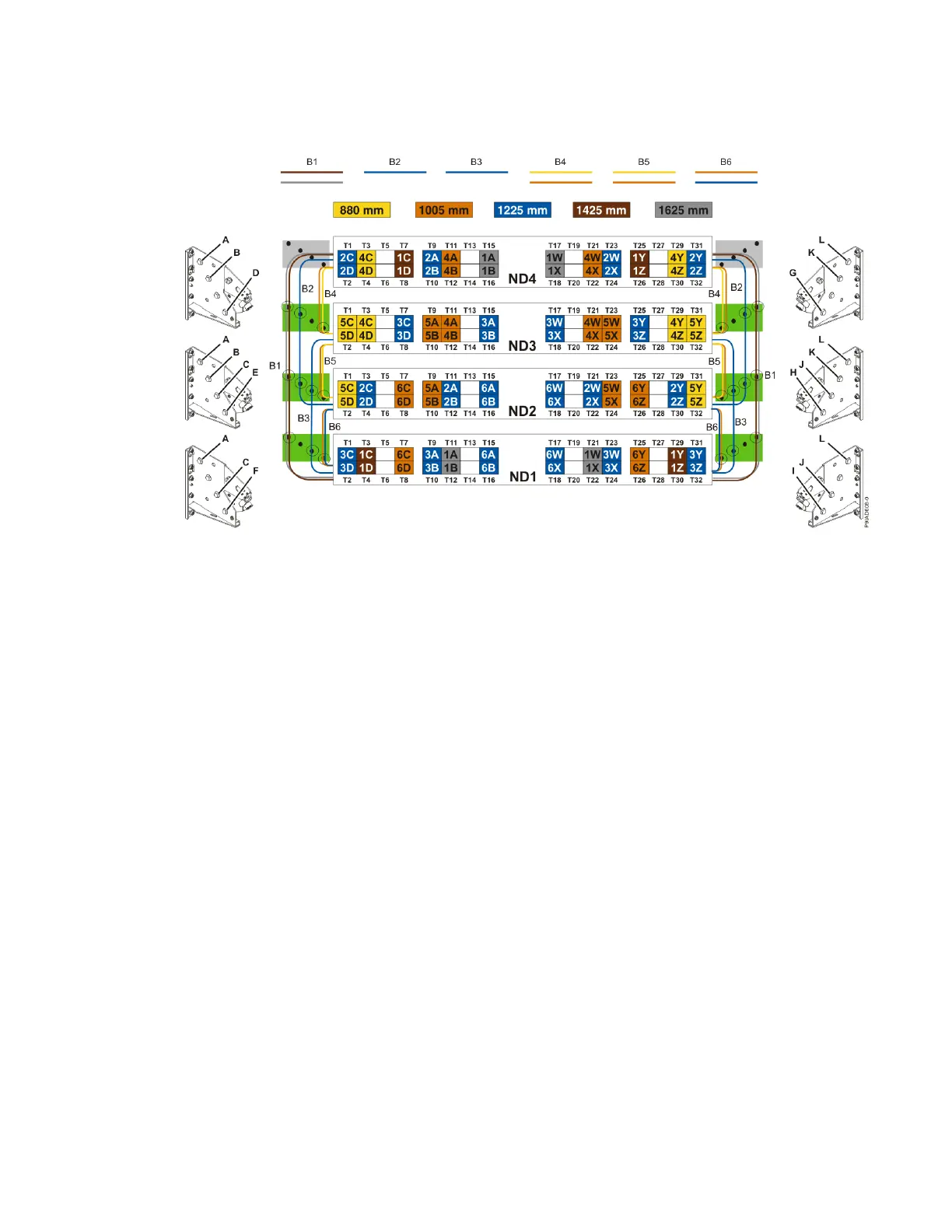 – The right B1 bundle contains 1W, 1X, 1Y, and 1Z. This bundle attaches to the clips (L).