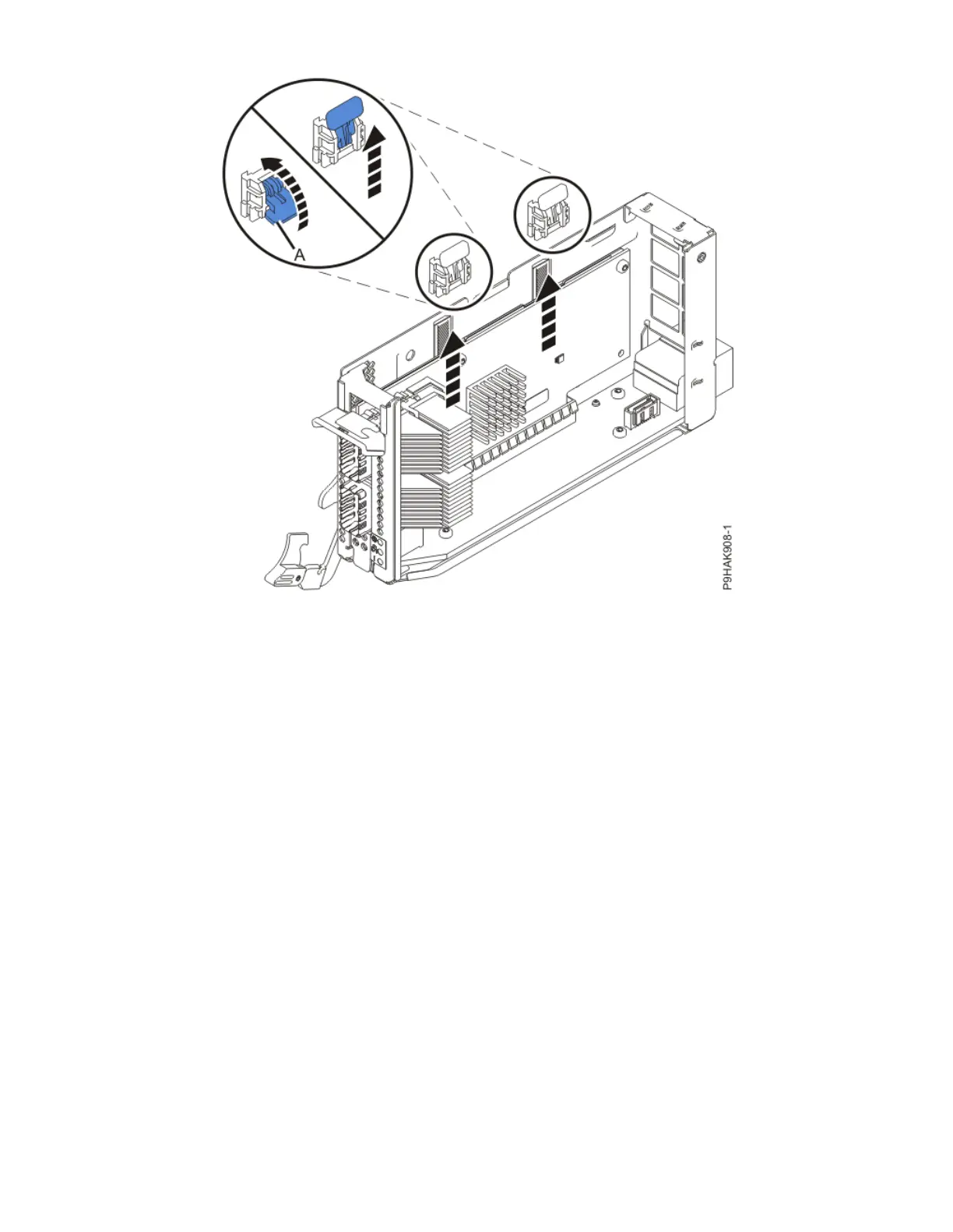 Figure 393. Opening the adapter retainers for the 9040-MR9 system.