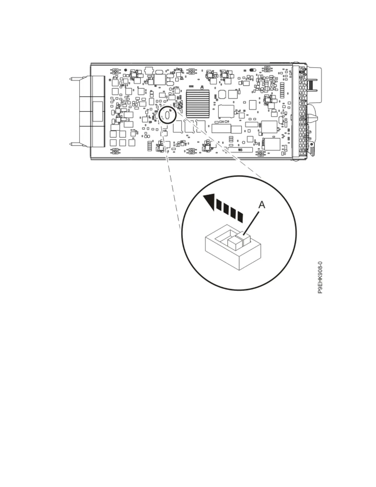 b) Ensure that the handle (A) for the service processor card is open as shown in the following gure.