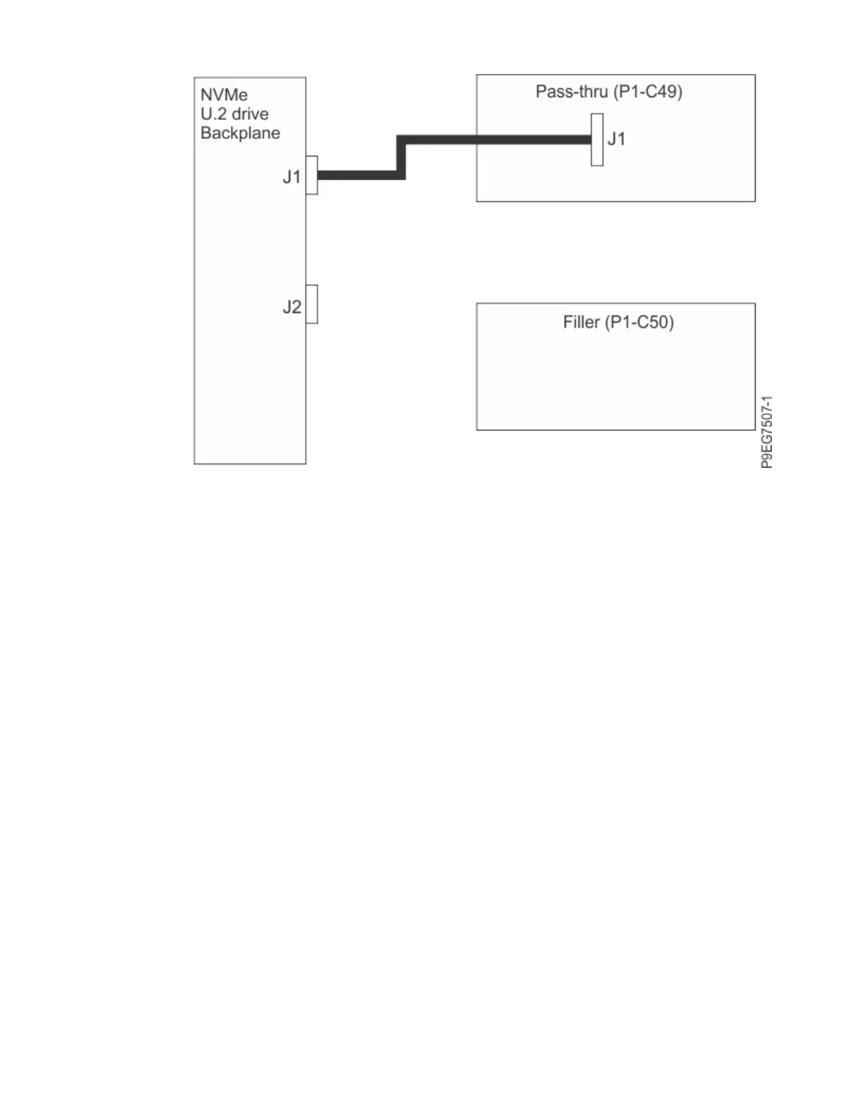 NVMe drive backplane to port (J1) on the NVMe U.2 pass-thru card in slot P1-C50. See the