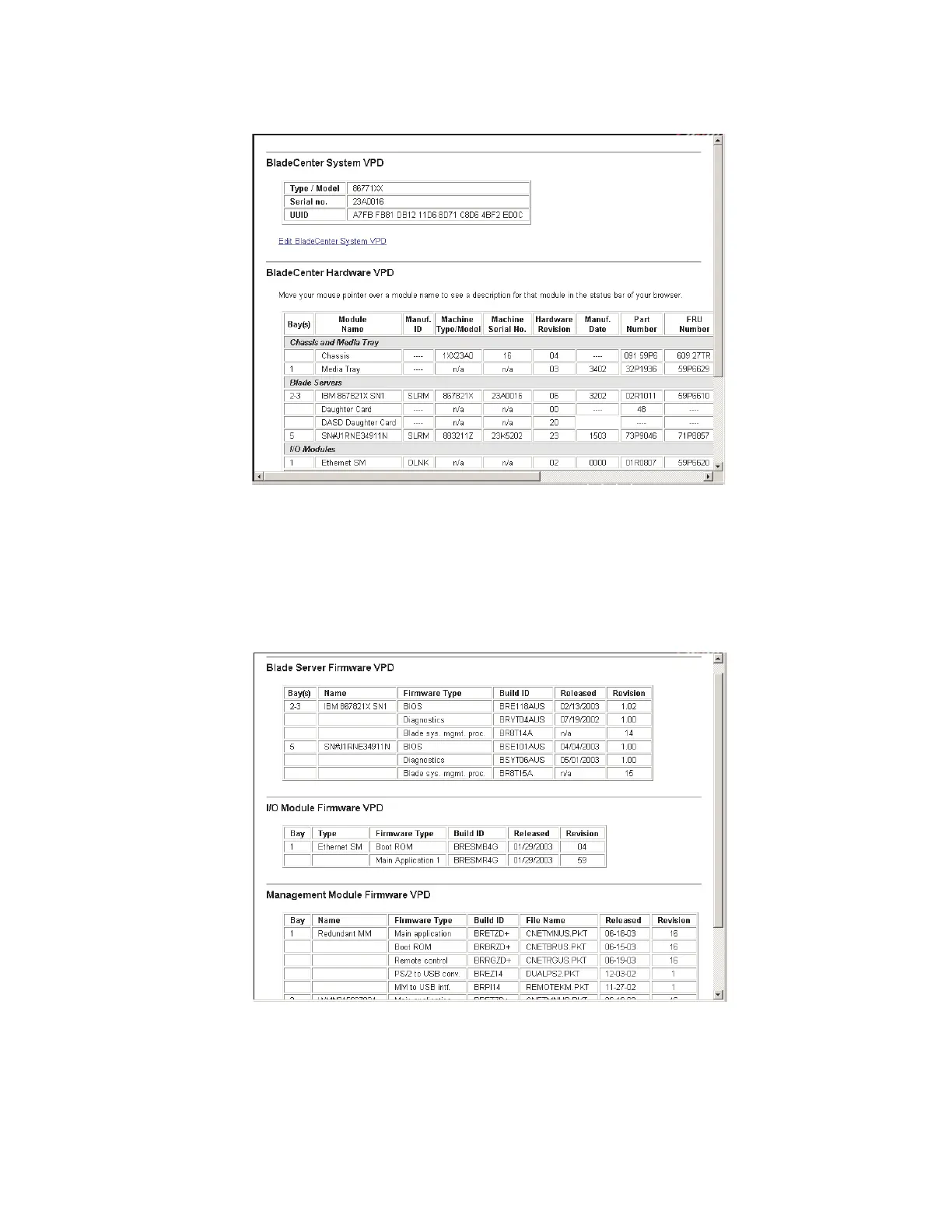 IBM BladeCenter Management Module - Hardware VPD; Firmware VPD