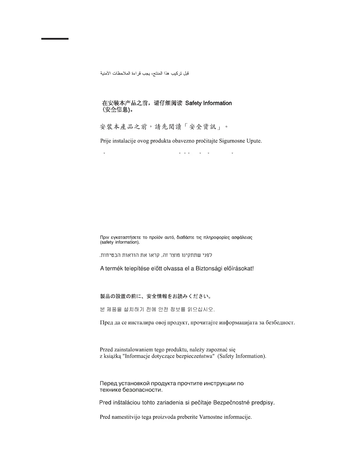 Pred instalací tohoto produktu si prectete prírucku bezpecnostních instrukcí.